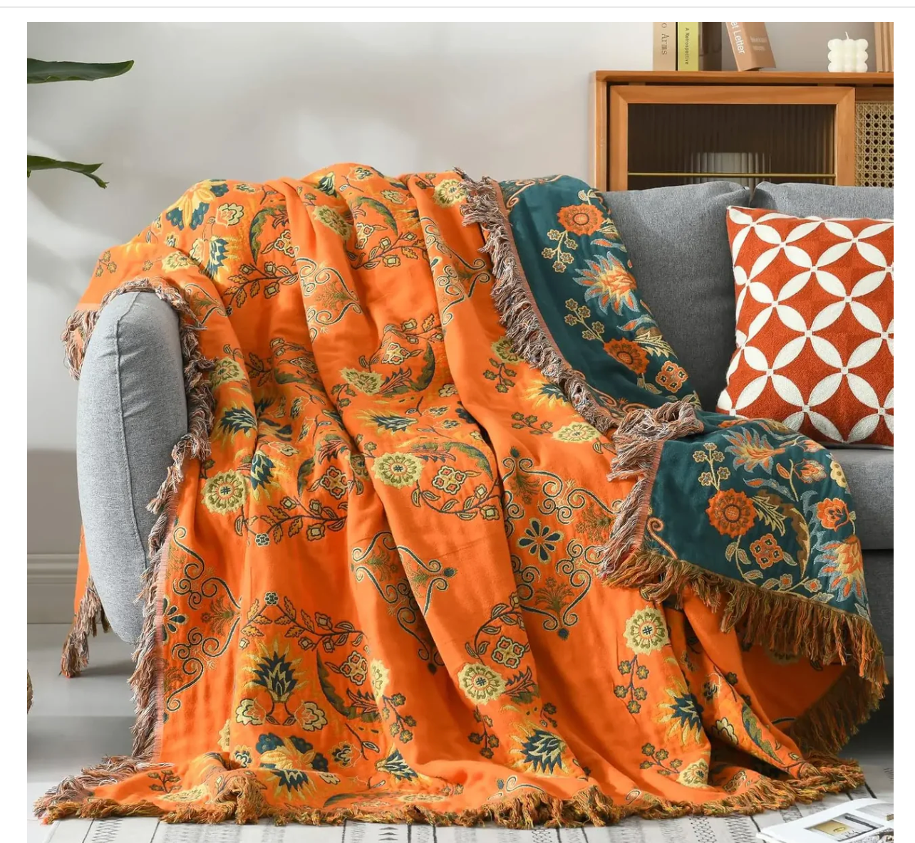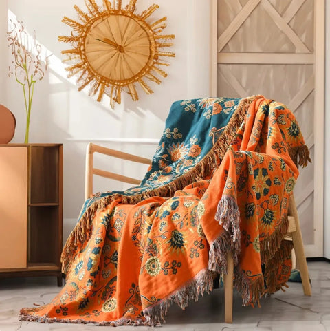Bien plus qu’un simple plaid, c’est une pièce maîtresse de décoration. Son motif floral bohème aux teintes chaleureuses et vibrantes transforme instantanément l’ambiance d’un salon, d’une chambre ou d’un espace de lecture.